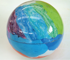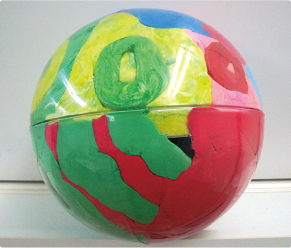 好きな色粘土をカプセル球の内側に貼りつけていきました。