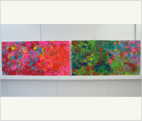 暖色系・寒色系2つの作品が完成しました。季節柄、鯉のぼりを連想しました。