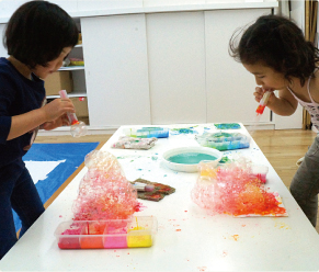 筆ともローラーとも違う「表現方法」に、「発見」と「表現」の歓びを感じてもらいました。